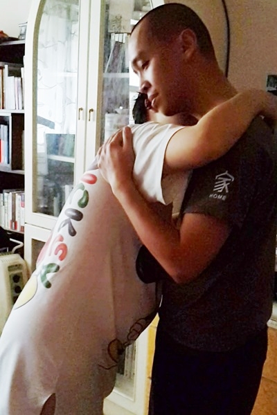相擁安撫唱歌也是一種轉移注意力的方式。圖片提供/蕭立峻、蔣紹文